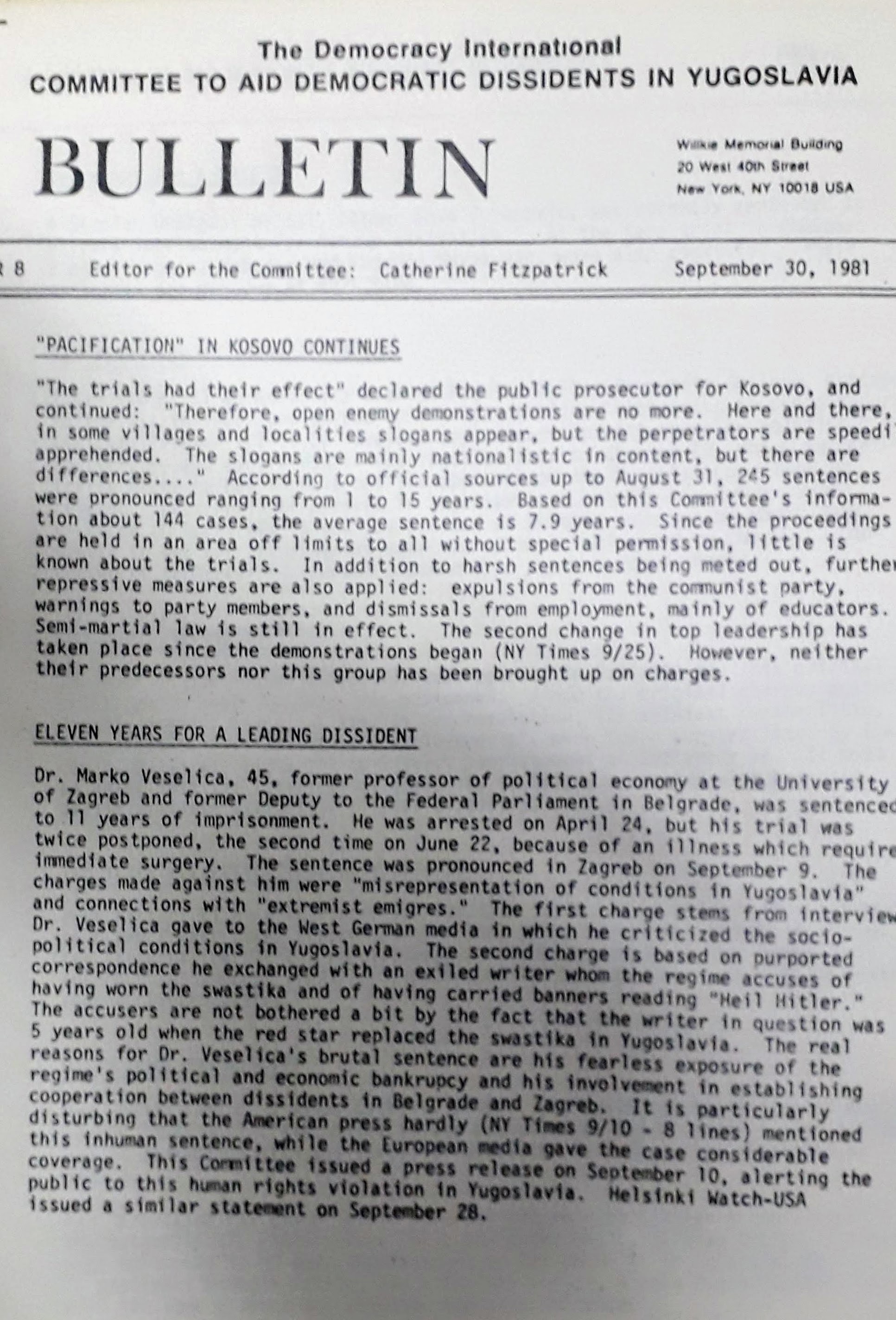 Peticija za ukinitev smrtne kazni v Jugoslaviji. 1983. Ro...