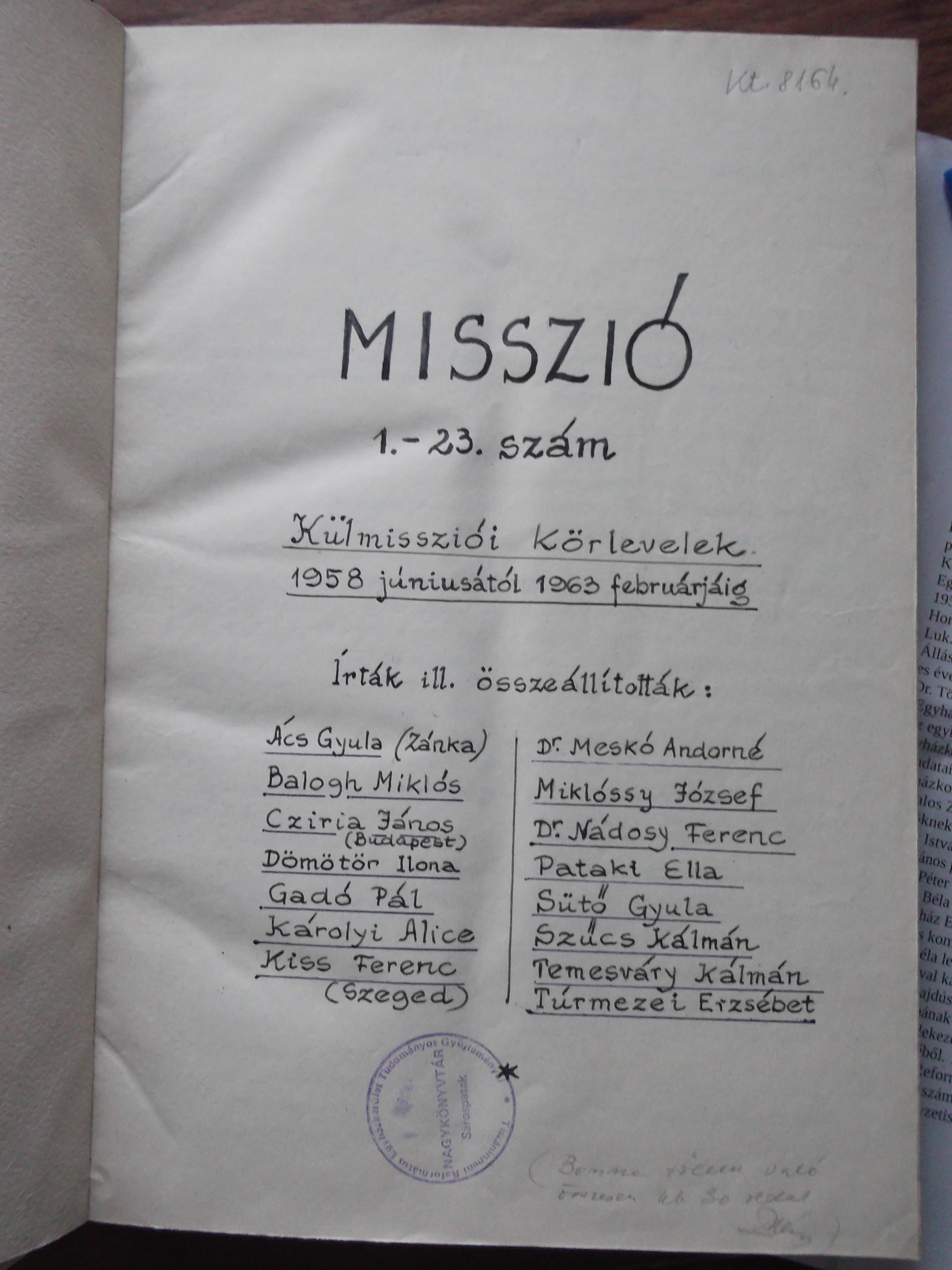 Unknown author. Questionnaire, in Hungarian, 1987–1989. M...