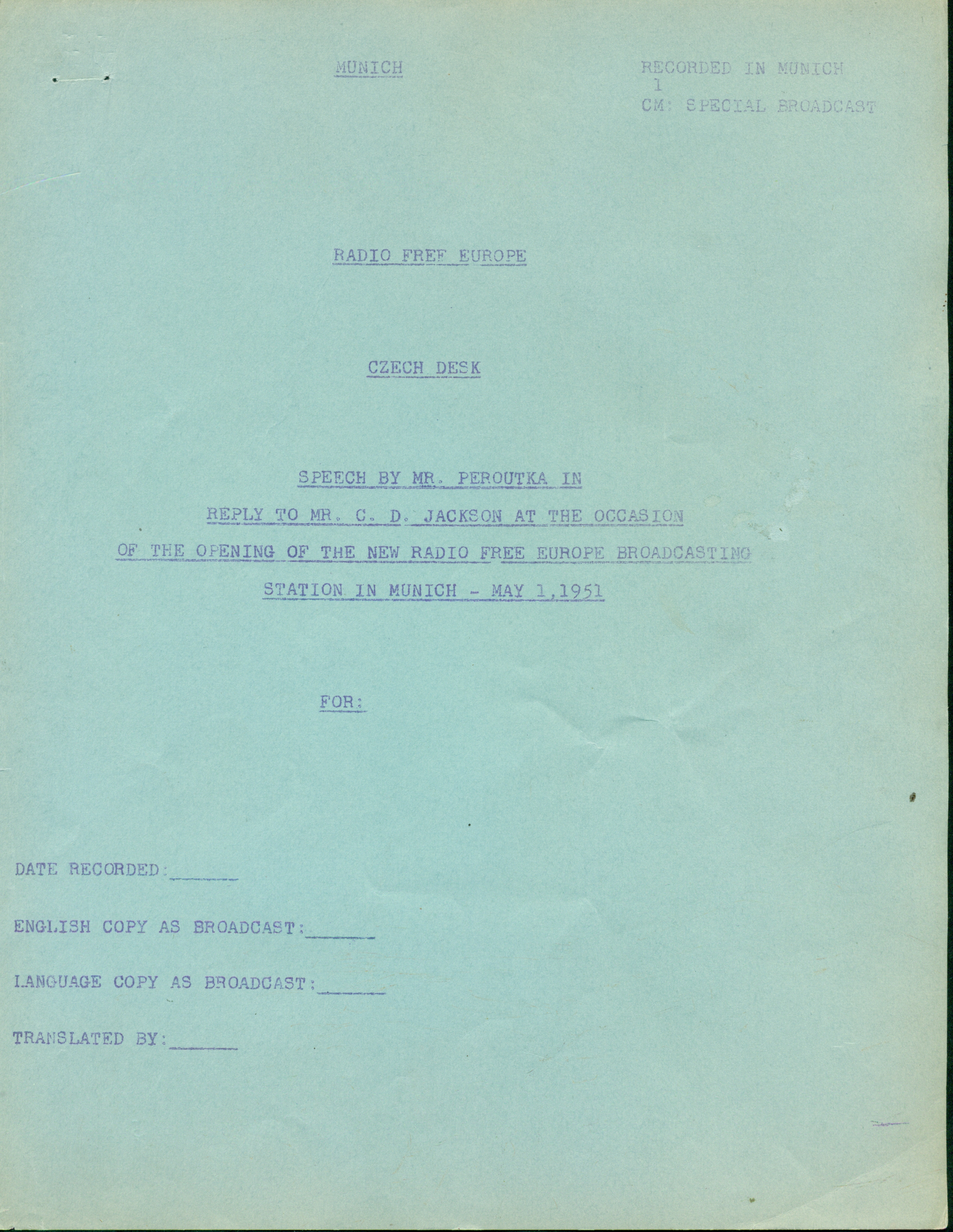 Peroutka, Ferdinand. Zahajovací projev v Rádiu Svobodná E...