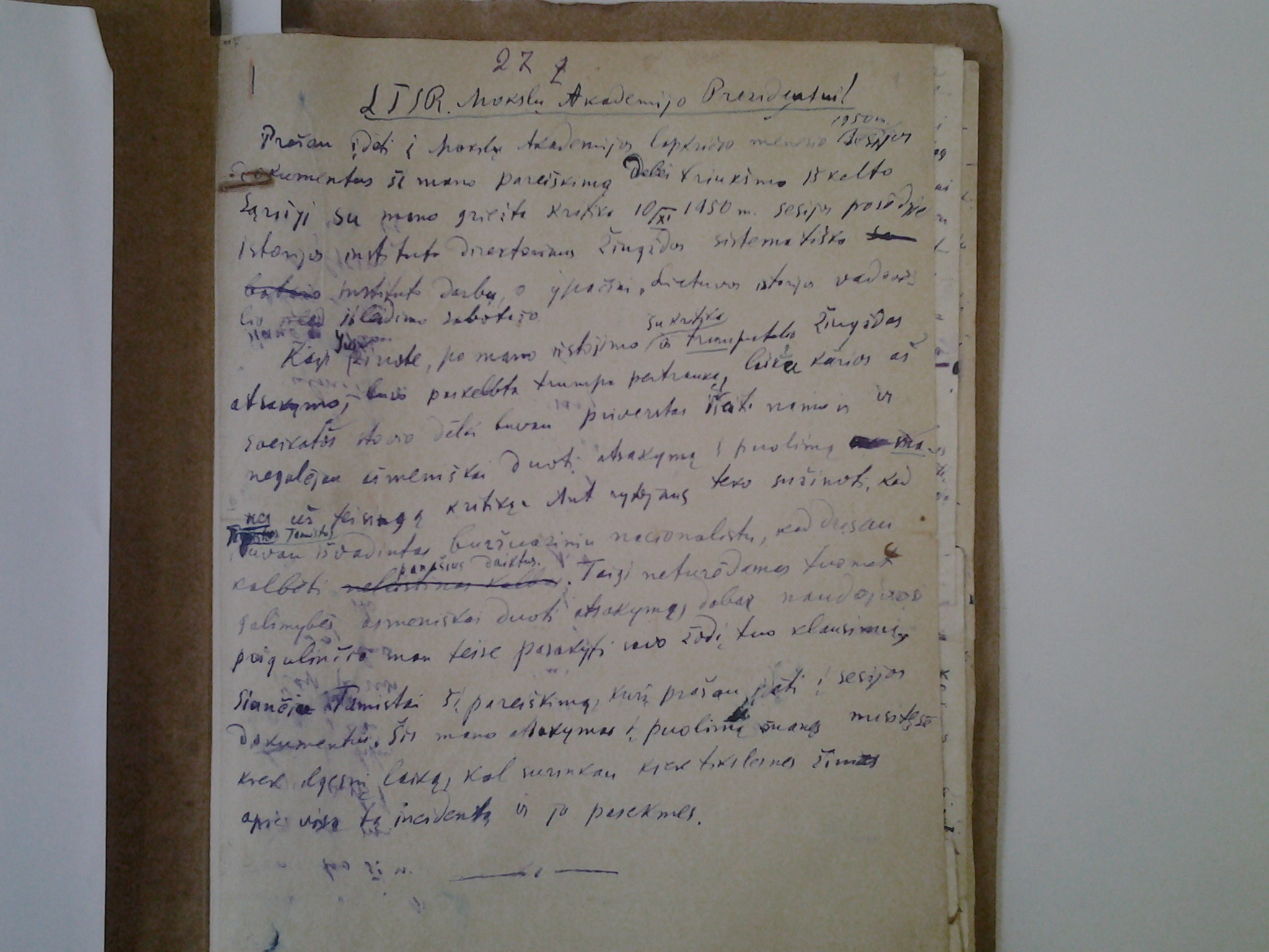 Matulaičio laiškas Lietuvos mokslų akademijos prezidiumui