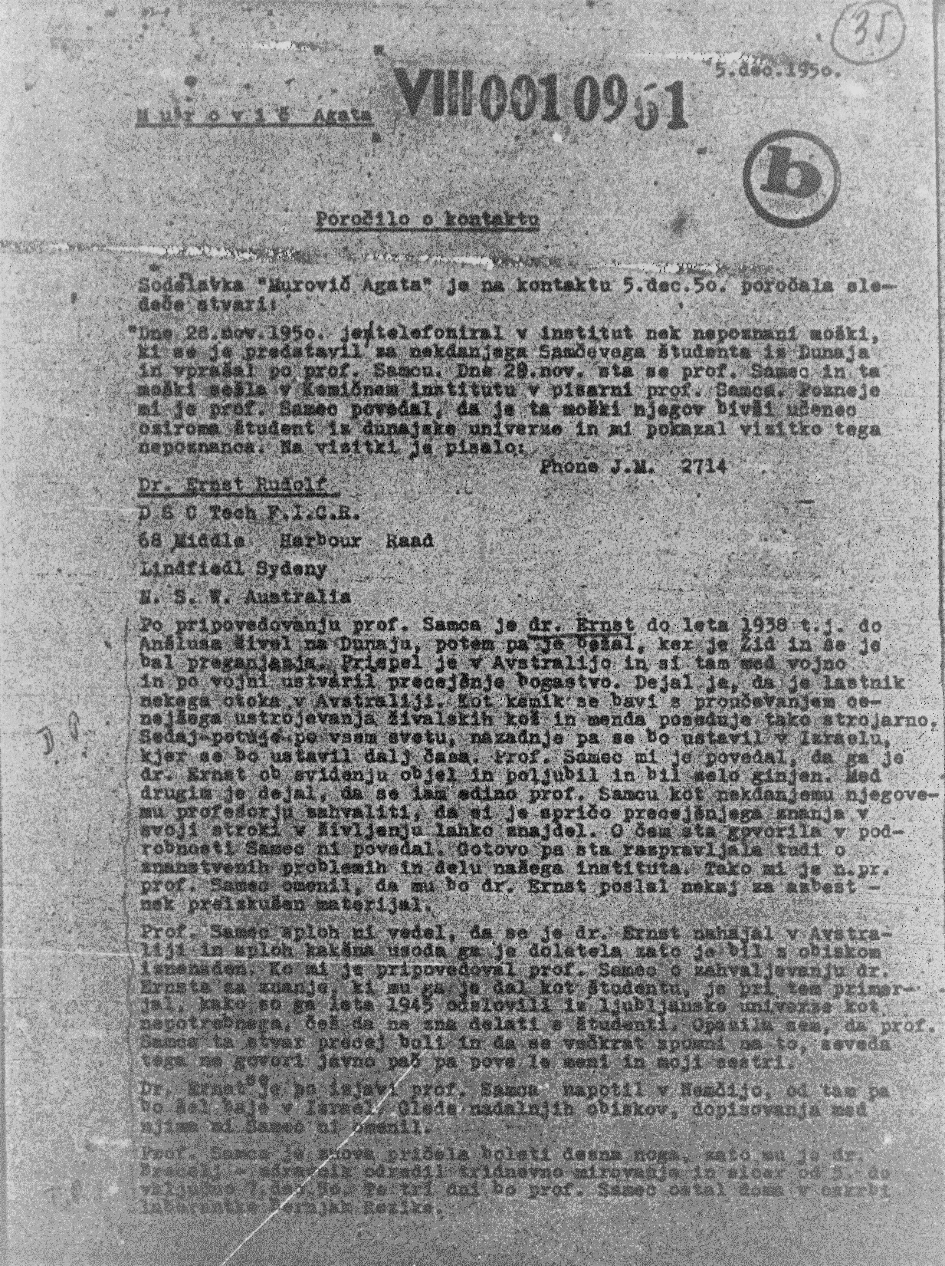 Poročilo UDB-ovske informatorke Agate Murovič, 1949. Rokopis