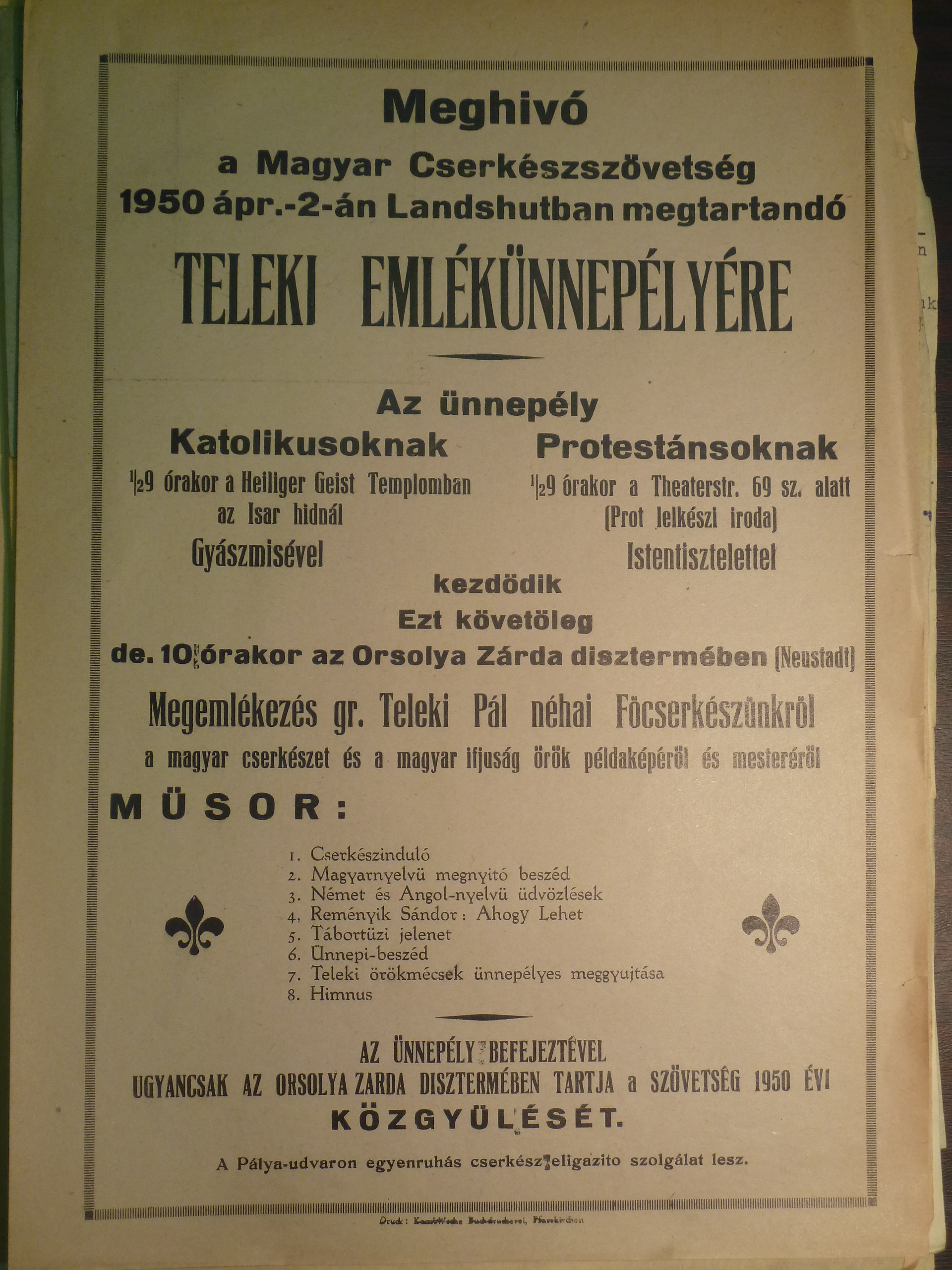 Meghívó plakát a KMCsSz által rendezett Teleki Pál emlékü...