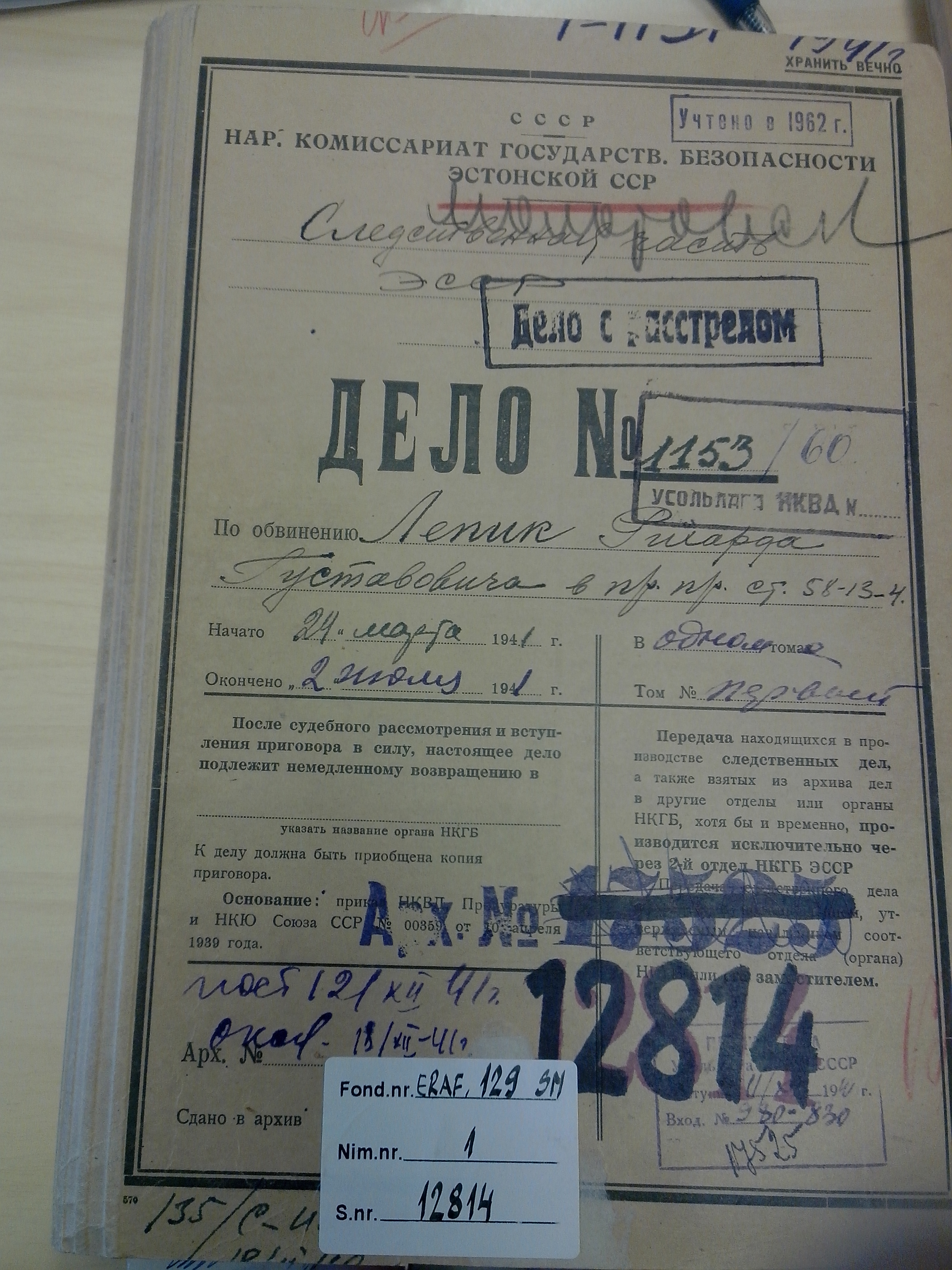 ENSV Riikliku Julgeoleku Komitee lõpetamata uurimistoimik...