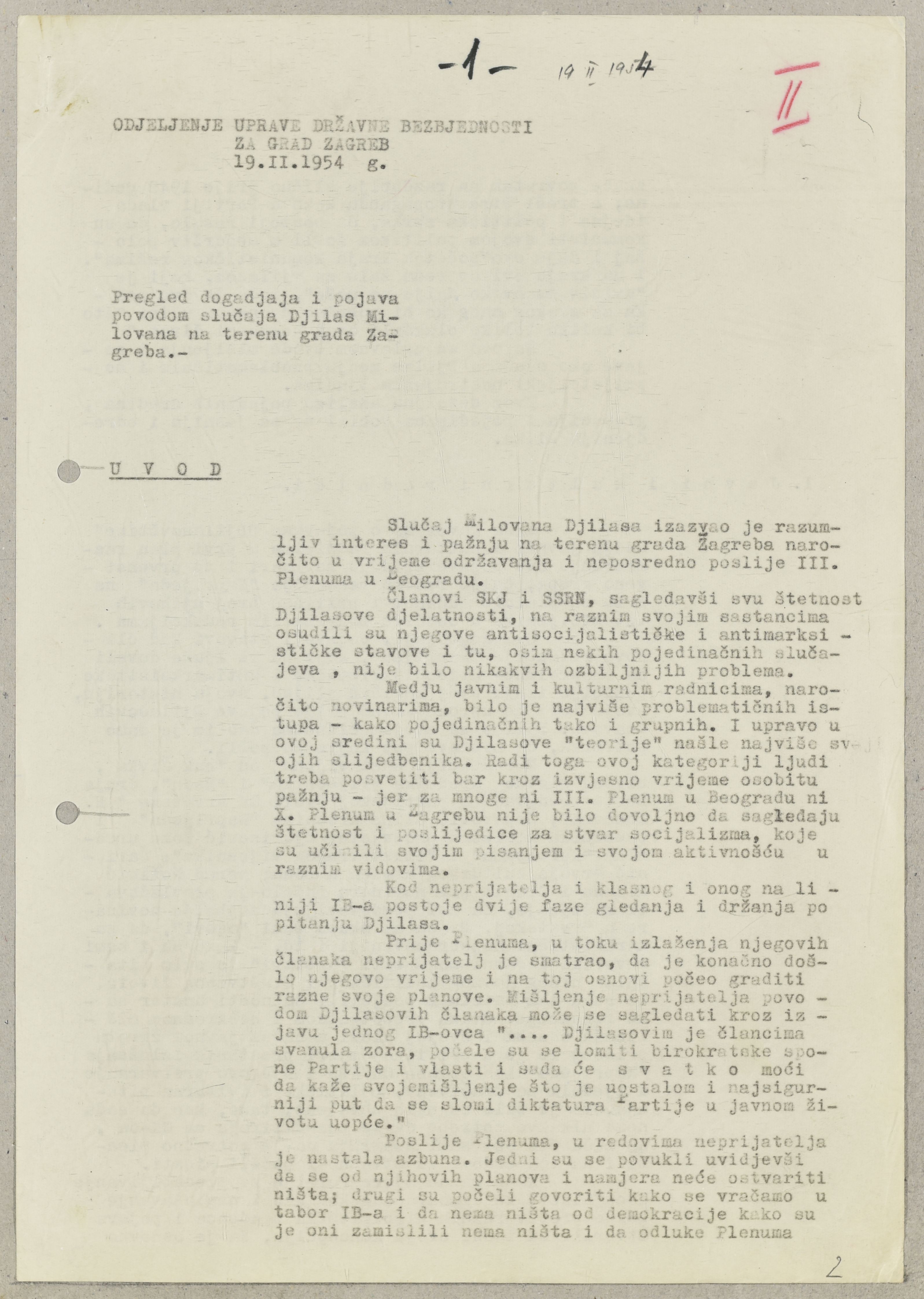 Izvještaj Službe državne sigurnosti za grad Zagreb o odje...