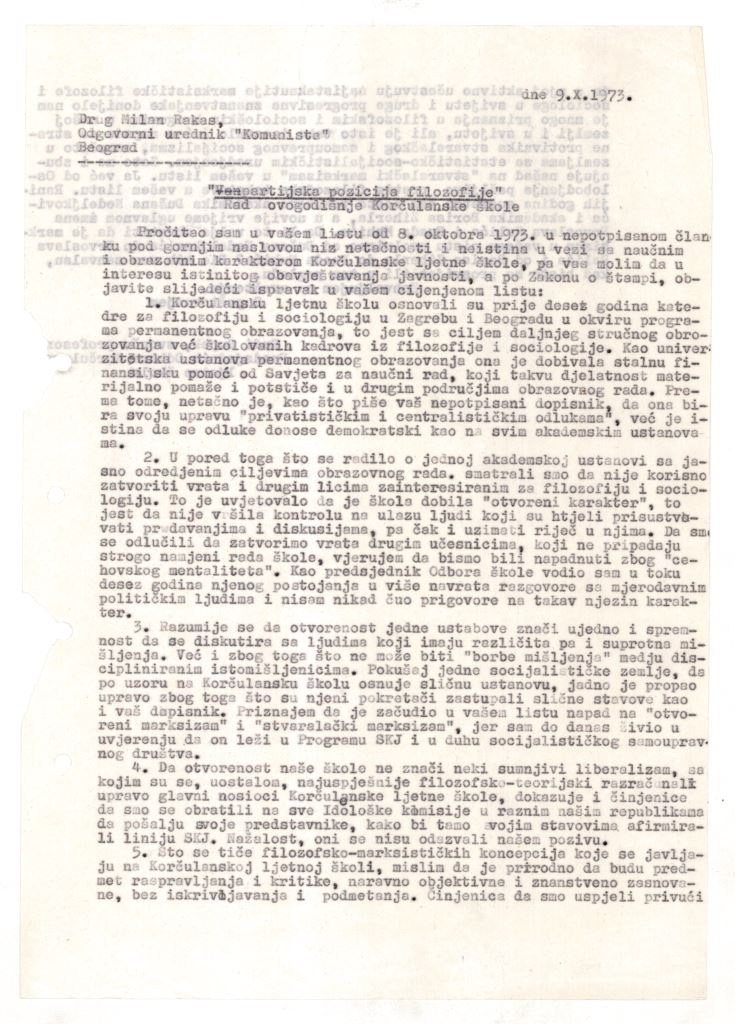 Pismo Rudija Supeka odgovornom uredniku lista Komunist Mi...