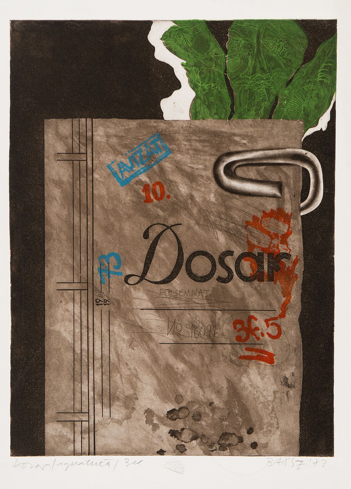 Imre Baász: File [Dosszié/Dosar], 1973, aquatinta, 45.1x3...